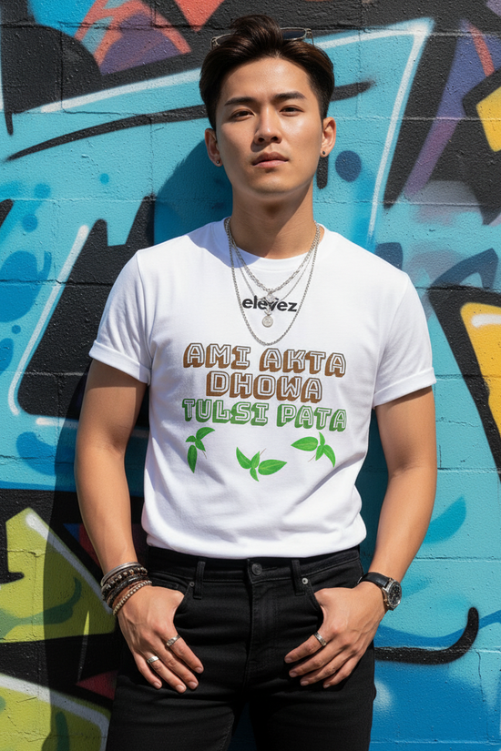 Embrace the meme, the mystery, and the message with our "Ami Akta Dhowa Tulsi Pata" Tshirt